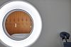 Стилеобразующим элементом интерьера стало массивное круглое окно-иллюминатор – аллюзия к космическому кораблю. Ему вторят схожие по стилю и форме декоративные элементы на потолке, в которые гармонично вписаны светильники.